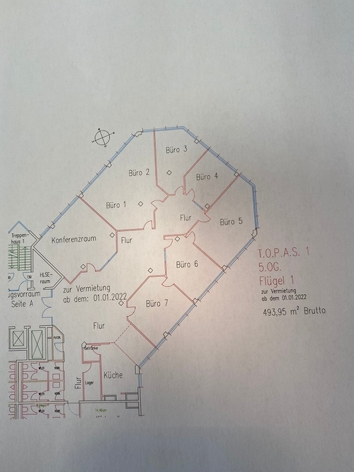 Bürofläche: 399,96 m² Gesamtfläche netto, 493,95 m² Gesamtfläche, brutto
